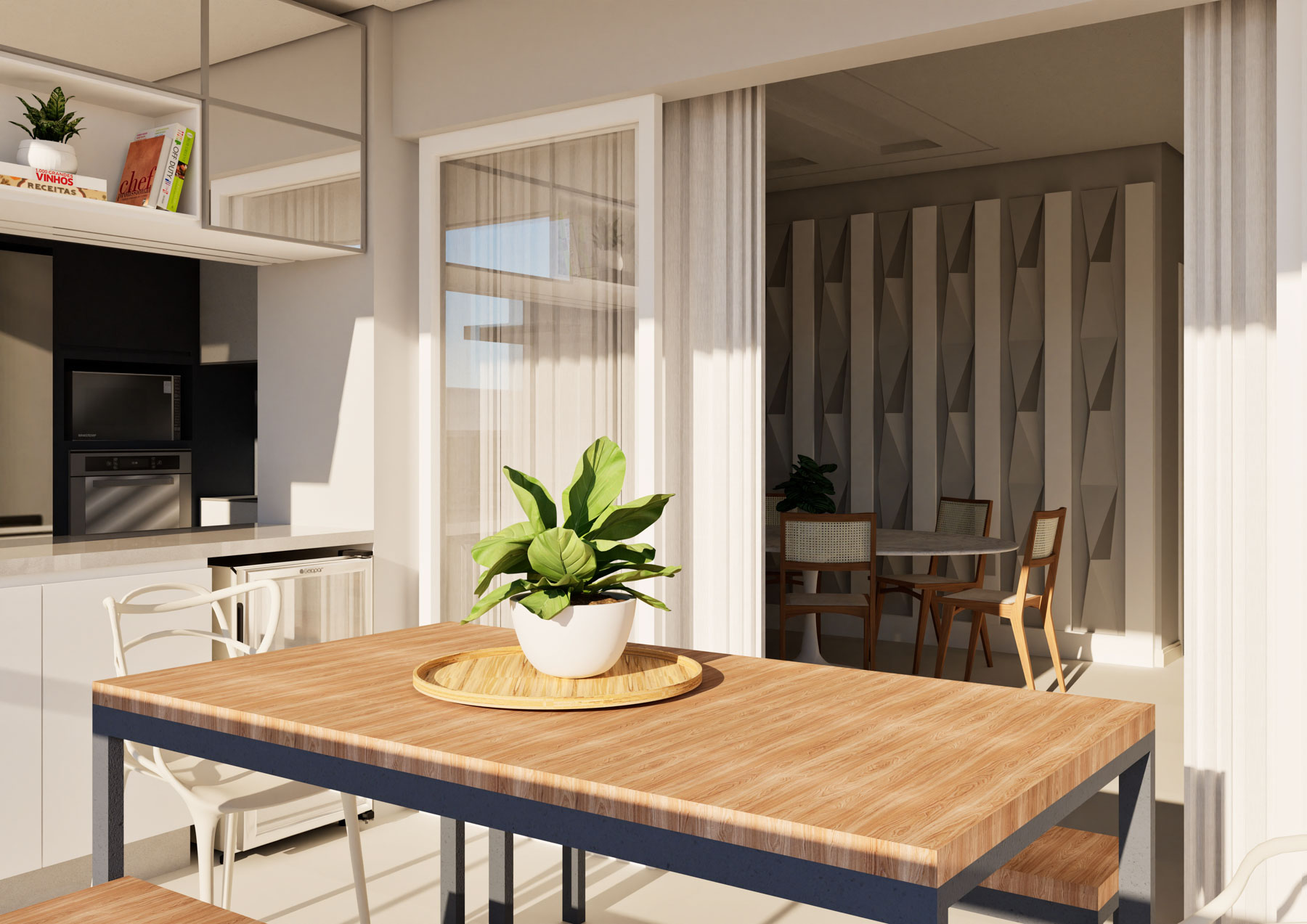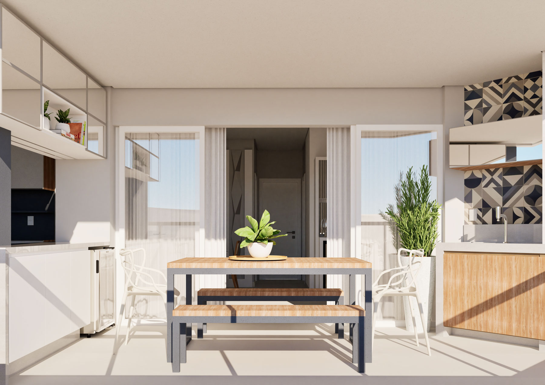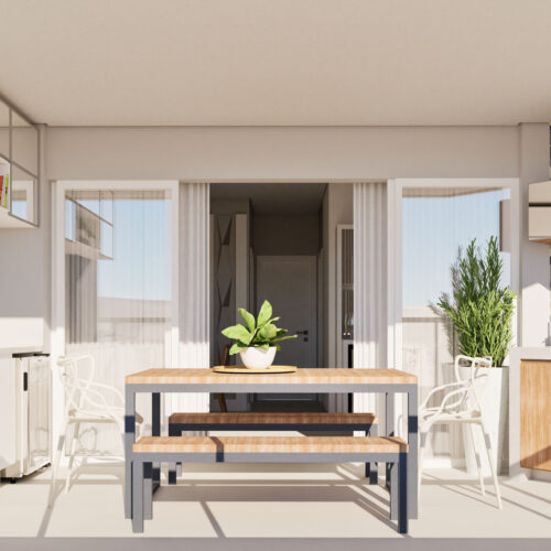 A livello più tecnico, la sfida era di mantenere molti degli elementi costruttivi senza modificarli, poiché si trattava di una costruzione nuova già in fase avanzata. Tuttavia, abbiamo apportato una modifica significativa: l’integrazione parziale tra cucina e terrazzo gourmet. Nel progetto originale era prevista una porta finestra tra i due spazi, ma insieme ai clienti abbiamo deciso di lasciare soltanto una “finestra”, guadagnando così spazio contenitivo e piano di lavoro.