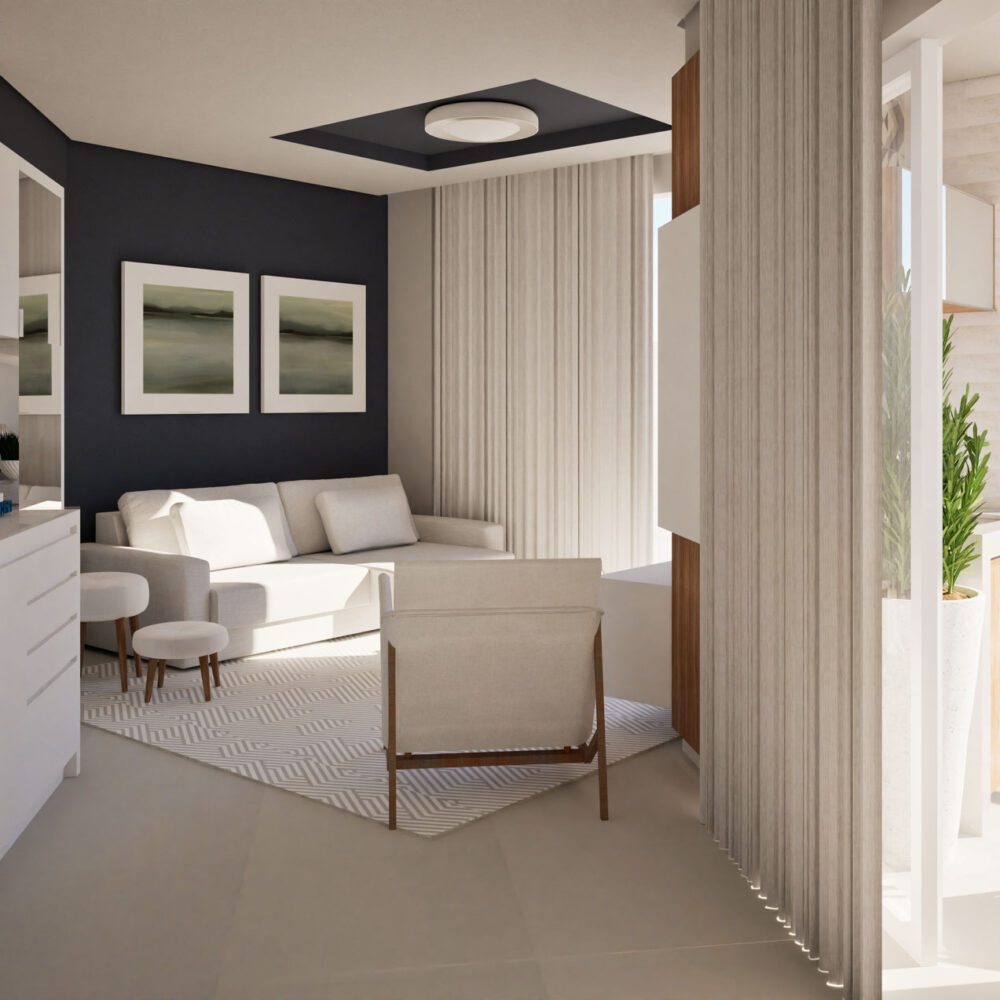Scopri il nostro progetto di design per un appartamento al mare in Brasile: un ambiente allegro e funzionale a Itapema, con colori che ricordano il mare e soluzioni su misura per una famiglia.