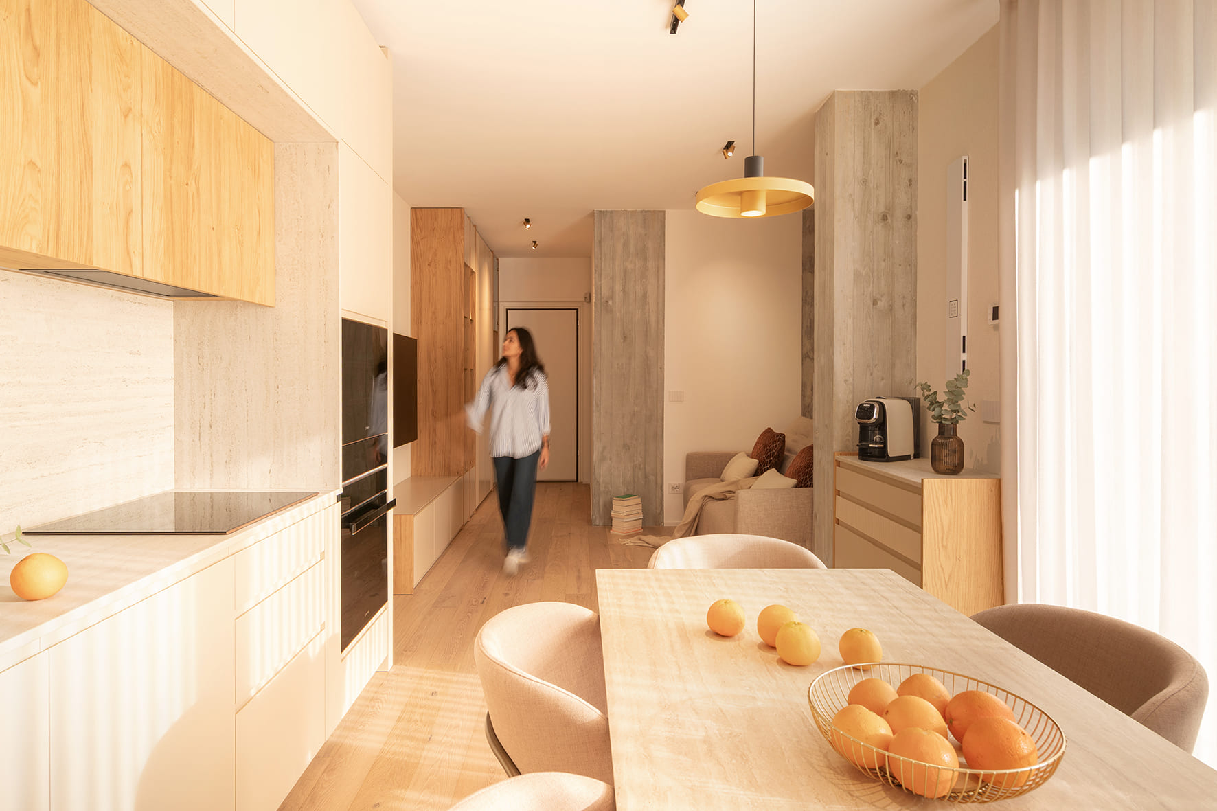 Situato nel cuore della Riviera Romagnola, a pochi passi dal mare, questo appartamento di circa 70 mq nasce da un dialogo profondo tra essenzialità e calore. La sfida principale è stata tradurre il desiderio di minimalismo dei committenti in un’atmosfera che non risultasse asettica, ma accogliente e vibrante. Il risultato è un progetto di interior design dove ogni linea e ogni materiale contribuiscono a creare un’ambiente tranquillo e autentico.